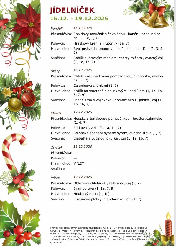 Kategorie 3-6 let - 45 Kč den (přesnídávka, oběd, odpolední svačina)